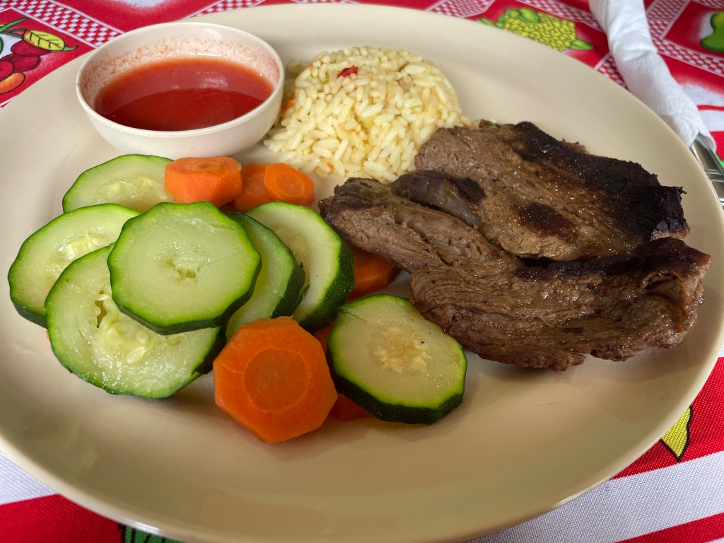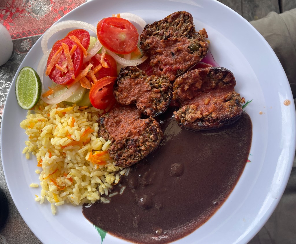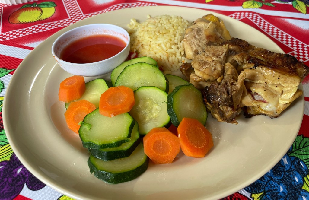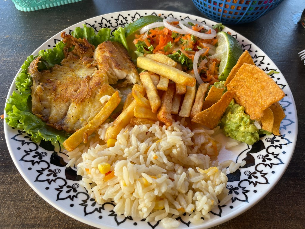 Being on the lake inspired me to try the local fish. Talapia was everywhere and I took the plunge. Typically, the options are either frito (fried), a la plancha (usually a grilled filet), or con ajo (in a garlic sauce). I wanted to try the garlic sauce, but I was worried it would have butter. (For whatever reason, people forget that butter is made from cow’s milk, but think that mayonnaise is dairy-based. Mayo is made from eggs and oil, y’all.) I tried both a filet and a whole fish a la plancha and it didn’t disappoint. The filet was slightly better, but I’m not complaining.