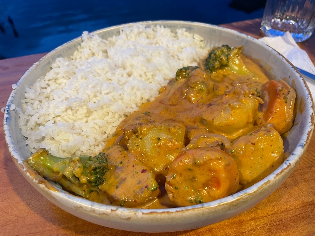 Probably the oddest choice was the “Asian” food. A restaurant called Chicken Bus serves a variety of pan-Asian dishes, filtered through Israeli tastes in Guatemala. (Hello Globalized World.) We spent most of the time talking to one of the owners about life in Guatemala and why he stayed. The lake has a magnetism he said; by the last day I totally got it. The food wasn’t amazing and didn’t quite scratch an itch, but it took me back to my days in Tel Aviv. Adam got the kung pao chicken, which wasn’t very spicy. I ordered the red curry with veggies, which was very coconut milk-heavy like an Indian curry but doesn’t have quite the punch of flavor you would expect from an Indian or Japanese curry. It’s kind of like one of those filling meals that your college roommate made for you one day that is meh but before you know it you kind of get addicted to the flavor because it’s so filling and easy to make.
