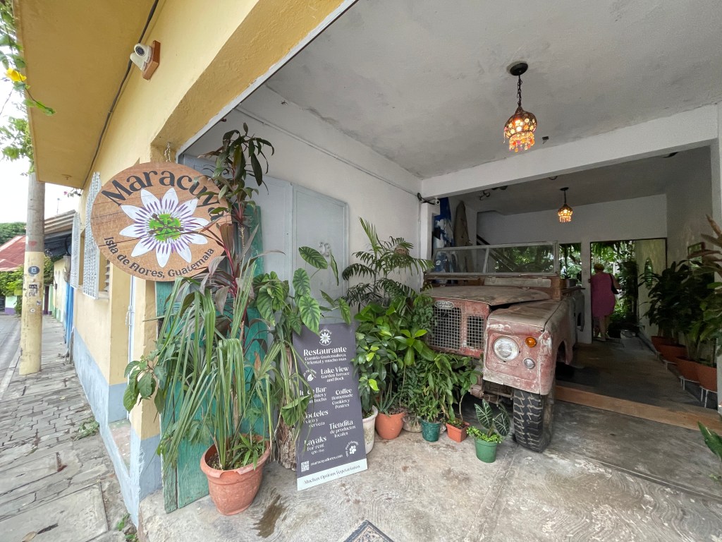 After dinner & a treat, we stopped at a tienda to purchase some snacks and I found gluten-free, baked crackers. Since the Yaxha hike was at noon, our plan was to eat a filling breakfast so that we could just eat snacks on the hike. Look at this beautiful restaurant we found called Maracuyá: