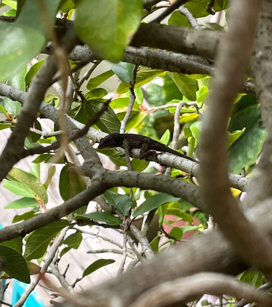 The menu looked so good and interesting too! However, when we woke up, I realized that there was no way I could eat a real meal. My stomach was completely turned upside down. Thank goodness for the medicine we packed and the crackers. I told Adam he was on his own and he dutifully sent photos of his breakfast: shakshuka de pepián, served with plantains, avocado, black beans, and billet (a mini tamale stuffed with vegetables). (We had pepián back in Antigua.) Being Adam, he also sent photos of all the lizards that were doing such a good job eating insects.