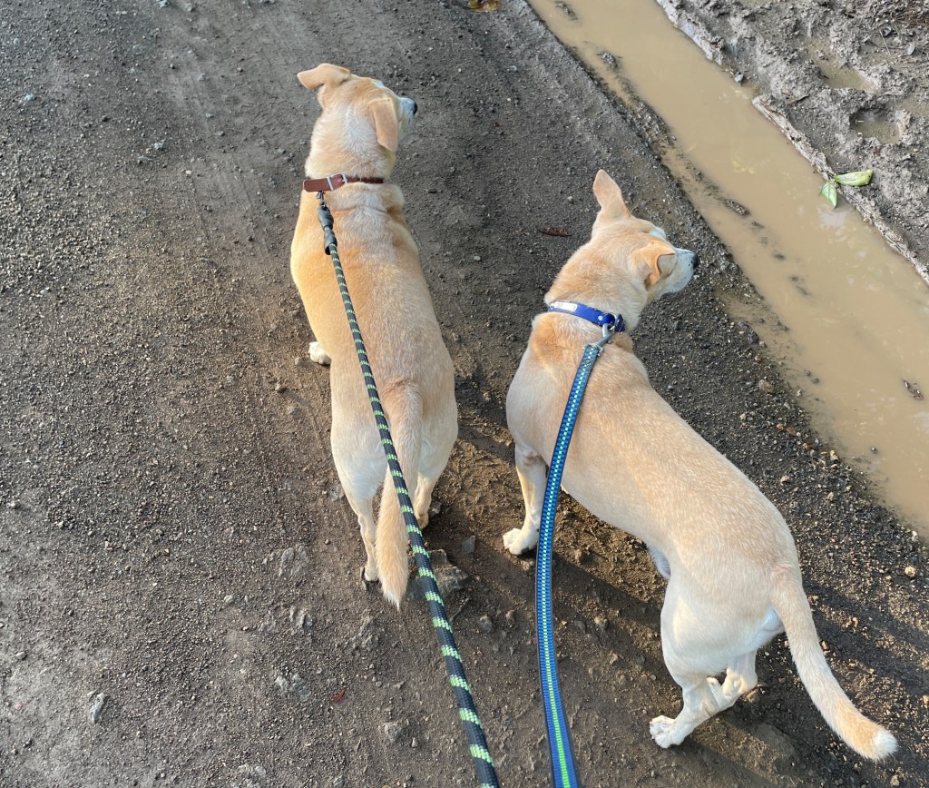 Nano and Pachaco are brothers and the only way to tell them apart is by looking at their collars. Yet, living with them for a week we’ve noticed differences in their personalities. Nano, the one with the brown collar, is quiet until it’s time for a walk and he gets the zoomies. When he sleeps or rests, he always sticks out his tongue, which is hard not to gush over. Pachaco, the one with the blue collar, has a little man-cave he hides in, which Yahm knocks on to get him to go for walks. When he feels like it, he loves to play fetch and he’s always looking for a meal even when he’s eaten. Pachaco also gets jealous if the other dogs get more pets than he does.