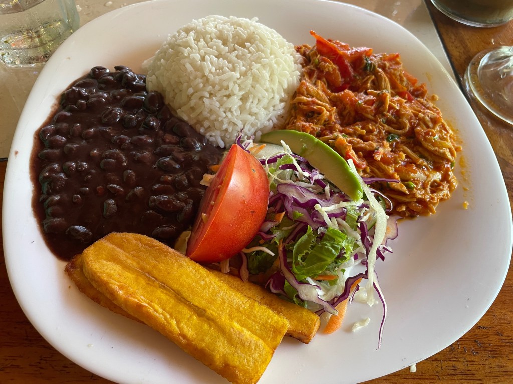 On the day we ran a bunch of errands, we decided to eat lunch out and wanted something by the beach. We found a taco stand but, unfortunately, they only serve flour tortillas. So we hopped into the hotel next door that had the perfect casado. A casado is a typical lunch consisting of rice, beans, plantains, salad, and a meat. Included in the meal was a fruit drink made from concentrate, which was, again, the refreshing sweetness we needed. I ordered the guanábana and Adam ordered the blackberry. I couldn’t resist ordering fried yucca as an appetizer. Fried yuccas are better than potato fries. Fight me!
