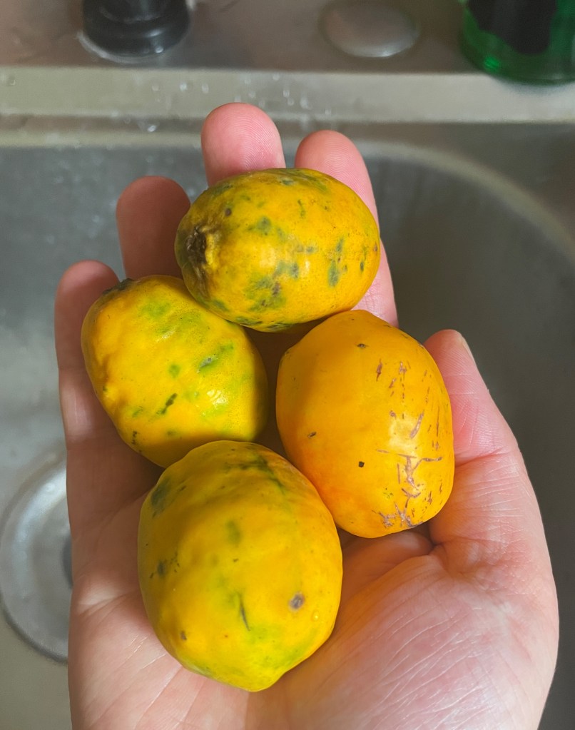 Stalls selling rambutan are everywhere in CR. On the scale of juicy fruit that tastes of a flower bouquet, rambutan was on the bottom of my list. I don’t mind working for my food, but the papery cover around the seed inside really takes away from the soft texture of the fruit. Or so I thought. Turns out, that isn’t a problem with locally-grown rambutan. Lychee is still my favorite of these bouquet-flavored fruit because of its bolder flavor, but if you find it overpowering, rambutan might be more up your alley. We also bought a fruit called jocote, which has a thin skin and soft flesh surrounding a very large seed. It tastes like a tart mango but the texture is more custardy.