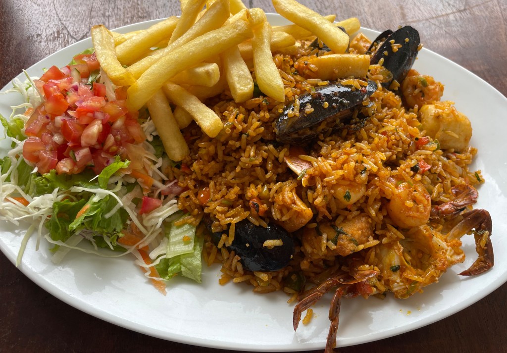 Though we cook most of our meals, we had a chance to visit two different restaurants. The first was a soda, or roadside diner that locals go to. They’re not fancy, but the food is hearty and delicious. Adam ordered the ceviche mixto (fish, shrimp and octopus) while I ordered the seafood rice (fish, shrimp, mussels, calamari, and crab). In the friendly competition we have over who orders the best food, I think I won this round. (Adam claims he won that round, but we all know the truth.)
