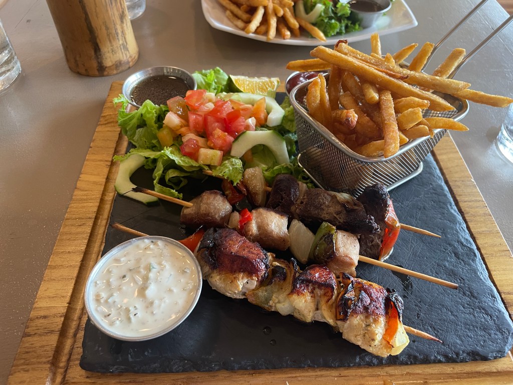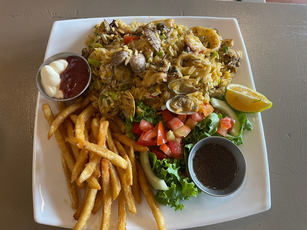 But since we’ve left the Tamarindo area, we’ve had a chance to eat at Tico spots. Not just any sodas (mom and pop open air diners), but the ones frequented by Ticos. At a soda on the way to Santa Cruz, Adam ordered the arroz con mariscos, which is always an excellent choice since the rice is packed with seafood. I ordered the three-meat kebabs. Kebabs! I haven’t seen kebabs on a menu in so long. Everything was so flavorful even without the salsas and dips.