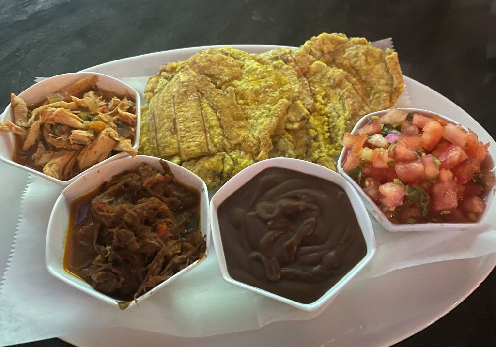 At the wonderful bar we mentioned in the general post, I ordered patacones, smashed fried plantains served with two types of meat, beans, and a pico de gallo. (Y’all, you can’t escape the beans.) Adam ordered the chicharrones, which was not fried pork skin. Instead, Ticos fry pork belly, usually in annatto, served with fried yuca, a salad, and tortilla chips. Everything was well-seasoned and the yuca was some of the fluffiest I had ever eaten. We went back a second time to the bar and I ordered the olla de carne, a beef soup similar to a Mexican caldo de res. Big hunks of beef on the bone are cooked in a deeply flavorful broth with vegetables like potato, yuca, carrot, sweet potato, chayote, and acorn squash. Our favorite bartender, Joseph, made sure I had lemon and hot sauce to add to the soup to give it that extra brightness. I didn’t know how much I needed this soup until I started eating it. It’ll cure whatever ails you. (I forgot to take a photo of this too.)