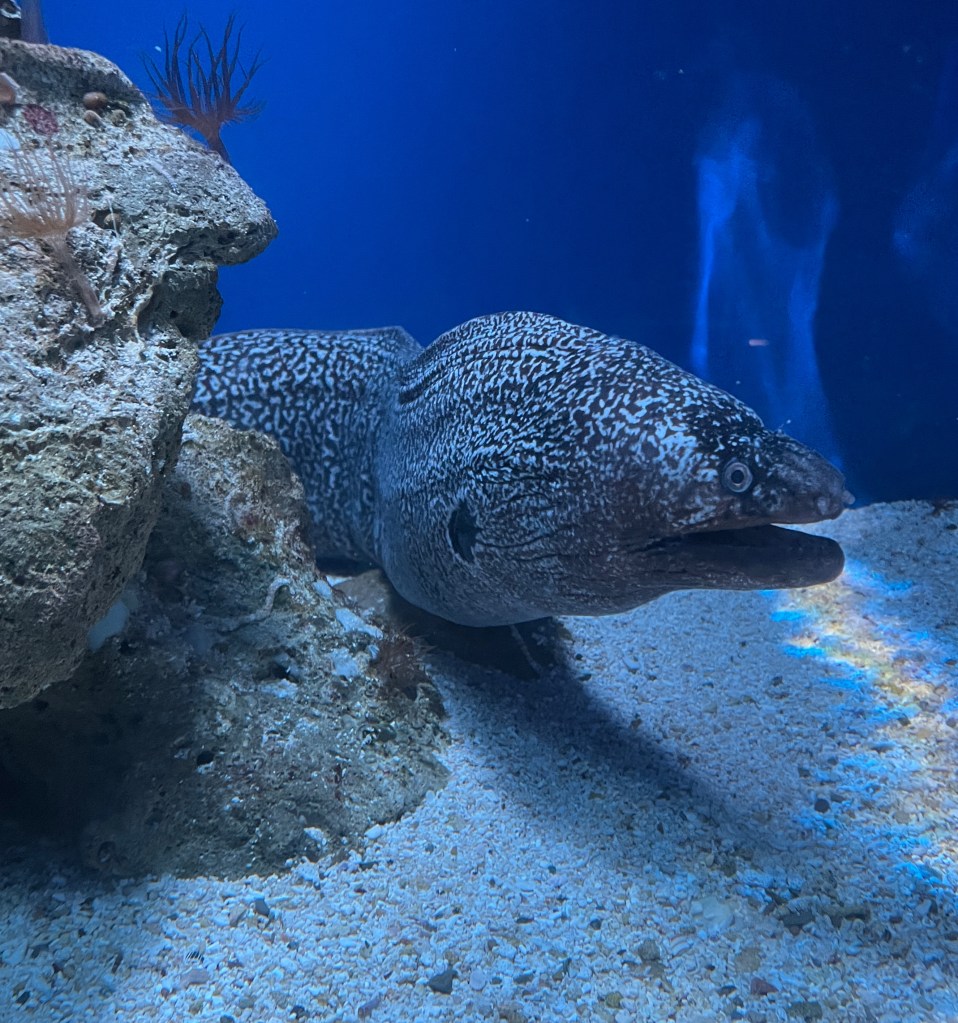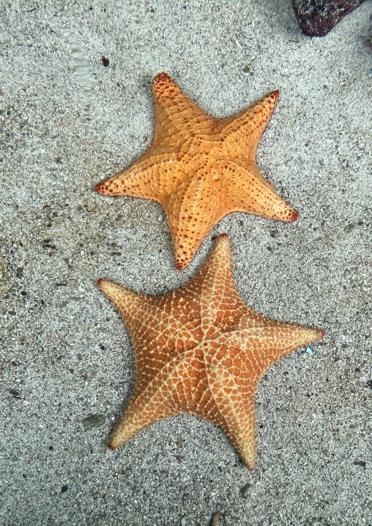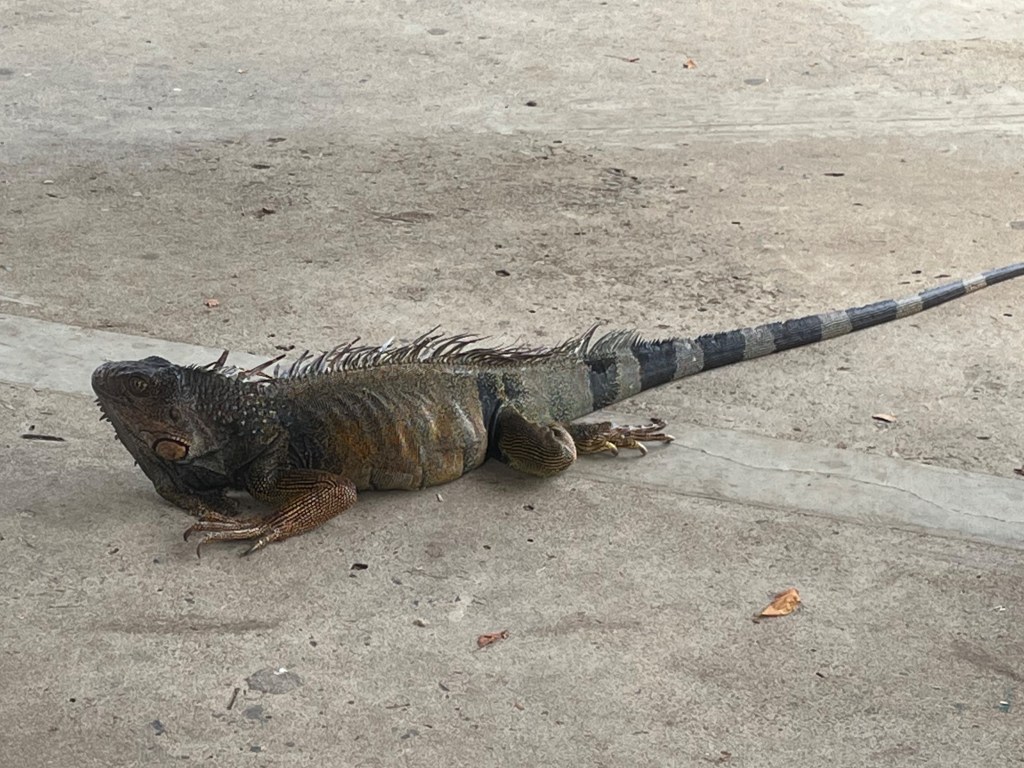 While biking, we stopped at Punta Culebra (“snake point”), a nature center operated by the Smithsonian Tropical Research Institute. The center highlights native species and forest types while also promoting conservation. Below are some photographs of animal friends, such as the Blue Morpho butterflies in the Butterfly Room and a gigantic iguana. However, quite a few animals were too difficult to capture using our phones, such as a sloth sleeping in a tree and lots of itty bitty native frogs that the Institute is trying to protect from a variety of threats, including chytrid fungus.