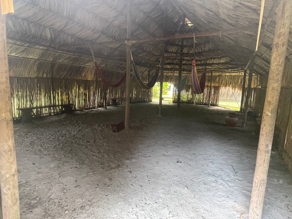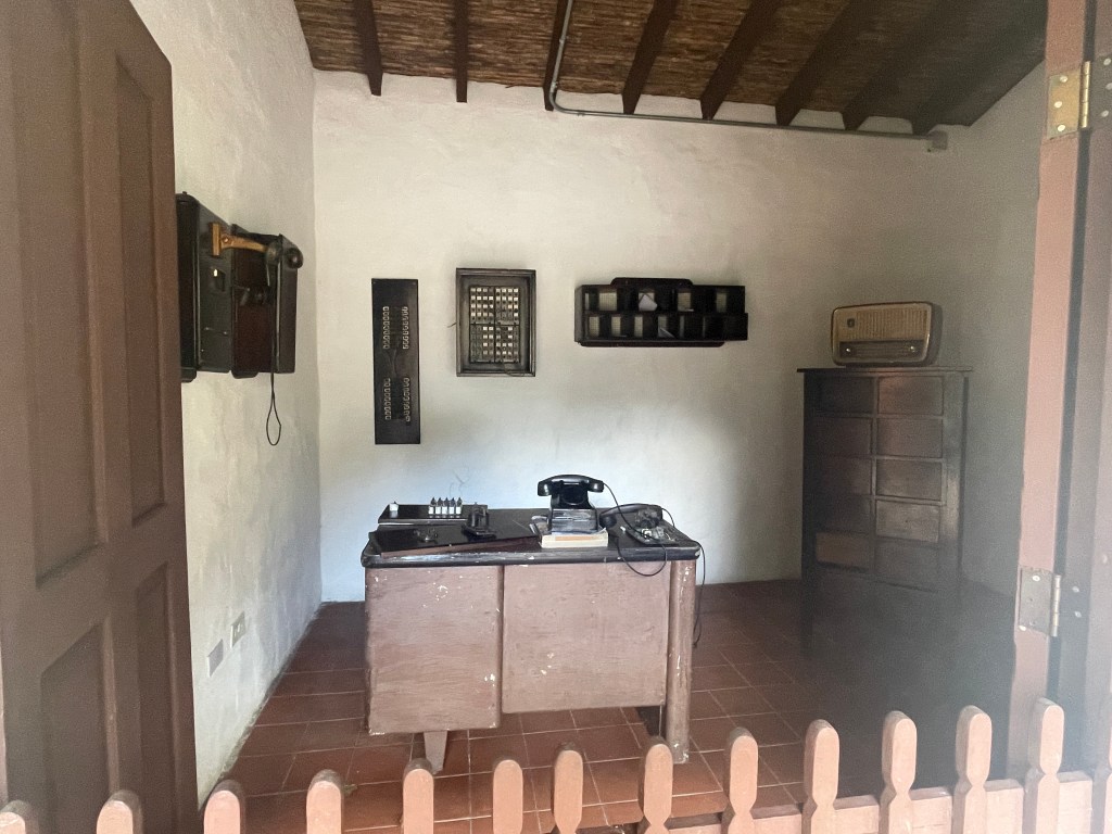 Once we finished our hike, we visited Mi Pueblito, a park that preserves three kinds of historical pueblos (towns): Colonial Spanish, Afro-Caribbean, and Indigenous. The Colonial Spanish town reminded both of us Old West mining ghost towns that pepper California, Arizona, Nevada, and other southwestern states in the U.S. (Yahm was especially excited by the telegraph room.) The Afro-Caribbean town didn’t have quite as much going for it, though the buildings were beautiful. The restaurant in the Afro-Caribbean town now only serves duros (popsicles) and drinks. The Indigenous town had a little area where artists sold their crafts, including molas, and huts that were a few degrees cooler than any other building we stepped into in the park.