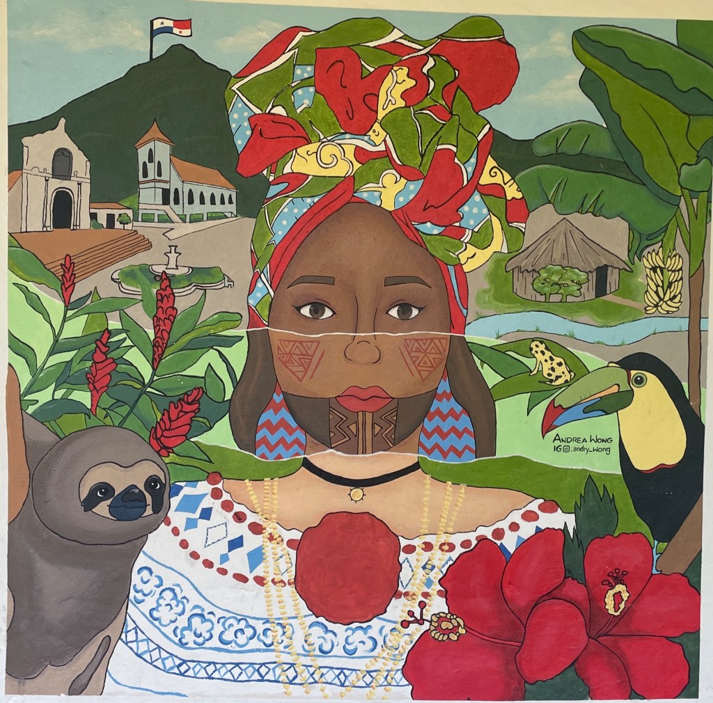 The mural below captures the essence of the park. If you notice, the woman is actually three women in one, from top to bottom: Afro-Caribbean, Indigenous, and Spanish. Together, all three cultures make Panama what it is today, along with everything else in the background such as Catholicism, animals like sloths and toucans, flowers, and bananas. (Looking at you Chiquita.)