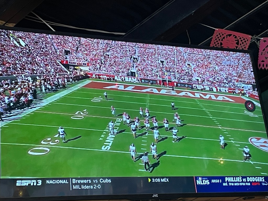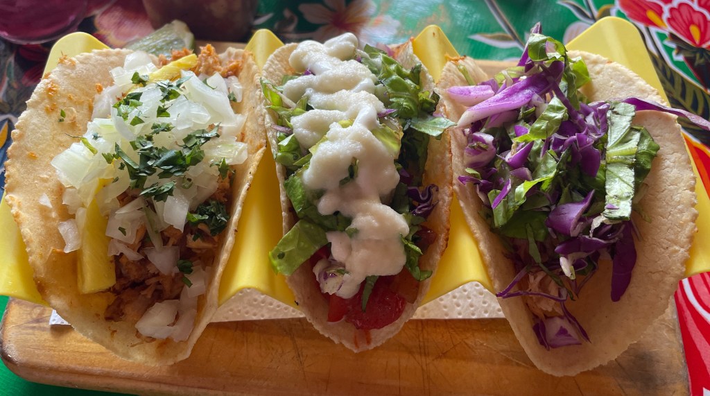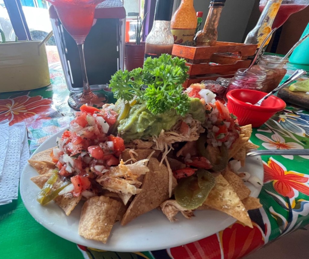 One last meal of note was the very delicious Mexican-inspired food in Bocas Town. We’ve found that Mexican food can be very hit or miss, but I was really craving tacos, so we wanted to give it a try. To be very frank: the 2 for 1 deal on jamaica margaritas was a strong selling point too. Adam ordered nachos (without cheese). In the background you can see the tray of hot sauces. When the server learned we eat spicy-spicy not just gringo spicy, he brought out the big guns. I ordered a bunch of tacos. Take a look at the taco in the middle with that white sauce on it. It’s a house-made salsa of blended hearts of palm and was the perfect topping for a veggie taco. I love hearts of palm and they’re so expensive in Panamá, so it felt like a treat. (I won’t judge you too harshly if you don’t like hearts of palm, unless you don’t like other pickled things and then I’m not sure we can be friends.) Also, the Alabama game was on in the background! As soon as Adam pointed it out, I turned to the server and yelled, “I went there! Roll tide!” He sort of smiled and nodded. He might have been extra confused since I didn’t actually watch the game. (I know, I know. I tried. I don’t get what is so appealing about watching people sweat and run after a ball when that is the last thing I would ever want to do, but whatever floats your boat…and Roll Tide damnit.)