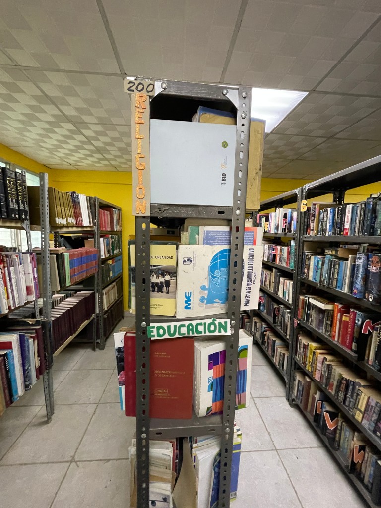When I walked in, only one person was in the library, deeply engrossed in his work. He didn’t speak any English, so I used a translate app to explain that I’m a librarian visiting Panamá and could I walk around and maybe take a few photos? He agreed, which I’m very grateful for, but I couldn’t ask all of the probing questions I wanted to ask. Just a few that went through my mind: How many people come to the library? What kind of programs do you do for the community? Do you do outreach on the other islands in the archipelago or invite them to visit? Is literacy an issue? What is funding like? Do you have ILL (inter-library loan) and how does it work? (For those who don’t know, ILL is a ginormous network that allows libraries from all over the world to borrow items from other libraries. If you’re visiting a library, be it public or at a university or wherever, and you don’t see the book/article/whatever you want, ask the circulation desk if you can request it through ILL. Chances are, the answer will be yes and it’s free for you to use! )