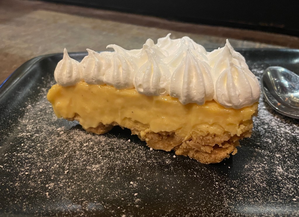 While in Boquete, we were excited to visit an upscale Panamanian restaurant called Donde Giselle. We ordered a bunch of little dishes to try and everything was excellent. Top row, left to right: fish ceviche with plantain chips; chicharrones with almojábanos (corn fritters); tacos with stewed beef. Bottom row, left to right: sancocho Panameño (a traditional chicken soup); a chicken stew; and, a maracuyá (passionfruit) pie that Adam said was heavenly. (Just look at that meringue and thick custard!)
