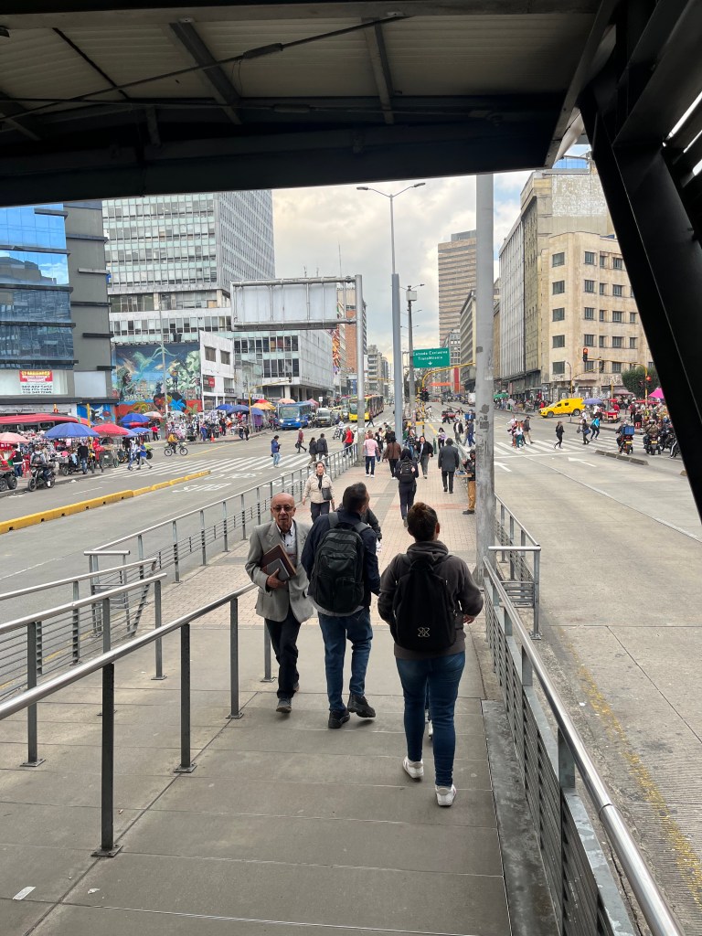 Bogotá, as discussed in our general post, is a sprawling city of around 10 million people. Cities of this size have incredible challenges when it comes to transportation and the movement of people. Bogotá is incredibly walkable despite being highly car-centric; and, of course, there are taxis and Ubers (which are technically illegal but still used by Bogotános). However, this city also features a bus rapid transit system (BRT) called TransMilenio, which is among the longest BRT systems on the planet. It has also achieved the highest capacity and highest speeds of any BRT system on earth. Since it opened in 2000, the BRT has seen its ridership climb: as of 2018 it was averaging 2.4 million riders on a weekday. Though it has its controversies, this exceptional BRT helped Bogotá win the Sustainable Transport Award from the Institute for Transportation & Development Policy in 2022. In fact, this is a system so well-regarded that it is studied in universities, including while I was in graduate school for urban and environmental planning. Moreover, the city used to rank among the most polluted and congested in the world, but TransMilenio has helped with that and it is easy to see why it has become the pride of the city.