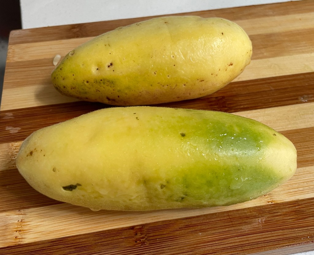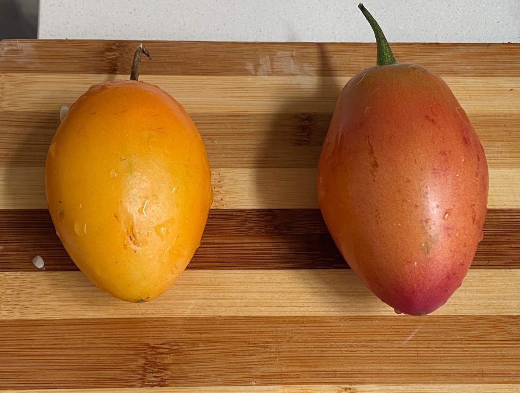 On the other hand, we did try curuba, also known as banana passionfruit (top row below), which we liked. I think they look more like old Persian cucumbers than bananas, but the interior looks just like passionfruit. They’re pretty tart and not as flavorful as maracuyá, but could be a good substitute in a pinch. I’d recommend trying it if you like passionfruit and don’t mind that goopy-seedy texture. We also tried lolu, which was by far our favorite new fruit (bottom row). It is exceptionally tart, so I always eat cucumber after to prevent heartburn. Most folks in Colombia drink it as a juice instead of eating it fresh since it is so tart. We have yet to try the juice, but it’s been a fun addition to our breakfast plates.