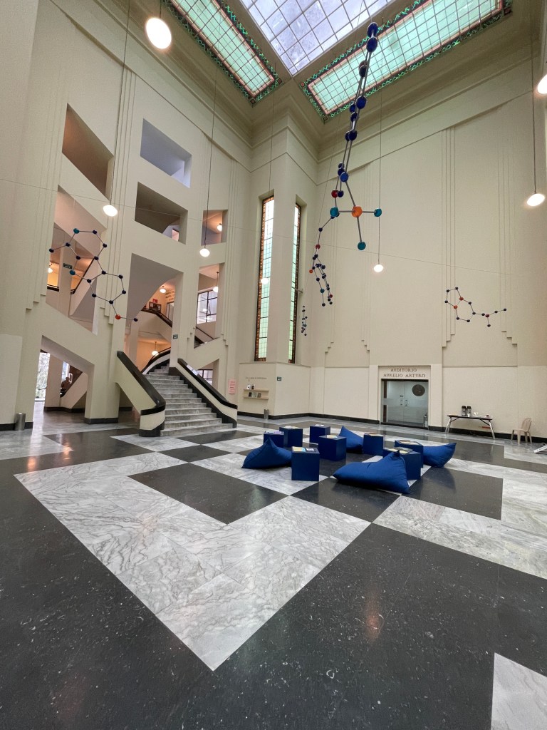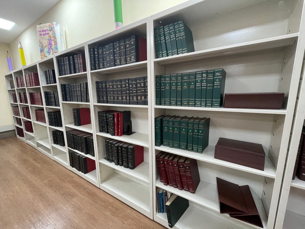 During our stay in Bogotá, we had a chance to visit two libraries. As we planned our time in the city, I knew I wanted to visit the Biblioteca Nacional de Colombia (National Library of Colombia). I didn’t bother getting in touch for a tour ahead of time largely due to my experience at the National Library of Panamá. I figured that if I asked a question or two and a librarian had the time and energy to chat with me, they would. As we walked around, there wasn’t too much to see since most of the material is in climate-controlled pods. However, much like the library in Panamá, so much material has been digitized and it is very easy to make an appointment to view material for research purposes. Below are photos of the exterior, the main lobby, and the Law Collection in ready reference (i.e. available for patrons to browse freely).