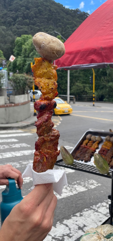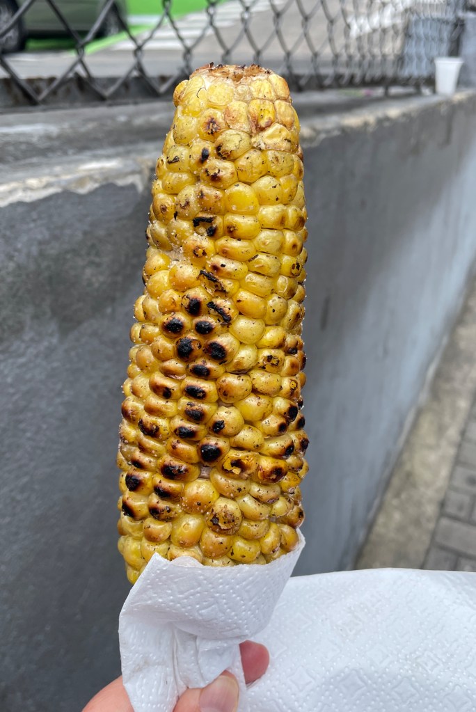 While we were eating the mango, I couldn’t help but notice the vendor next to us. This elderly gentleman was grilling big, beautiful corn and meats on a stick topped with potatoes. It didn’t take too much convincing for Adam to agree to split one of each with me. The corn was chewy and each kernel came off the cob very easily. This is not your typical Americansky corn y’all! The potato was perfectly fluffy and all the meats were good, though the flavor of the chicken was probably our favorite. (In case you’re wondering: nope, neither one of us got sick from all the street food.)