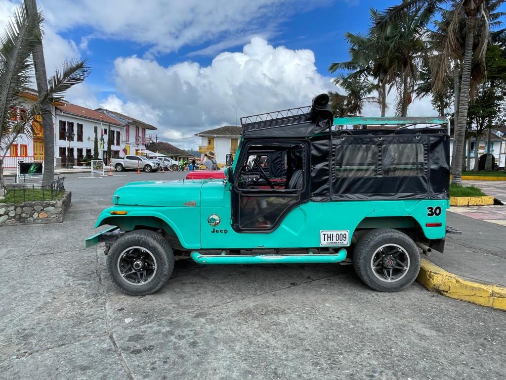 The main reason so many people visit Salento is to tour nearby coffee farms or to hike the mountains, river valleys, and cloud forests. On our first full day in town we headed to Valle de Cocora, where the Quindío River’s headwaters start. Since we did not have a car, we walked to the central plaza and bought tickets to ride in a Jeep Willy. They can get quite full, but people will stand on the back bumper. While it seems scary, it was actually a pleasant experience.