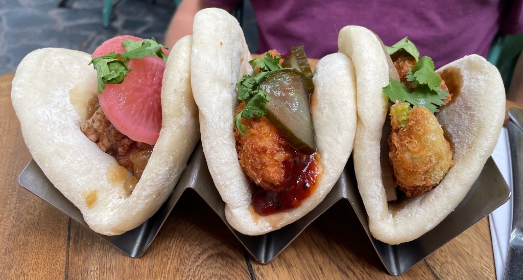 First, let’s talk about Medellín. Overall, we found the city to be underwhelming, including the food. However, we did find a decent Vietnamese restaurant near our hotel. I ordered the beef Pho, which was flavorful and very generous in its portions. Adam ordered all three bao buns on the menu: veggie, Korean fried chicken, and chicharron. The fried chicken was so good that he ordered a second one. These were also the biggest bao buns we’ve seen; they were the size of full Mexican tacos. We were both impressed by how much these buns filled Adam up until dinner time.