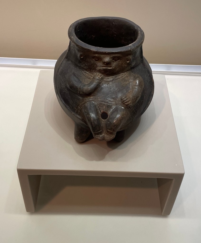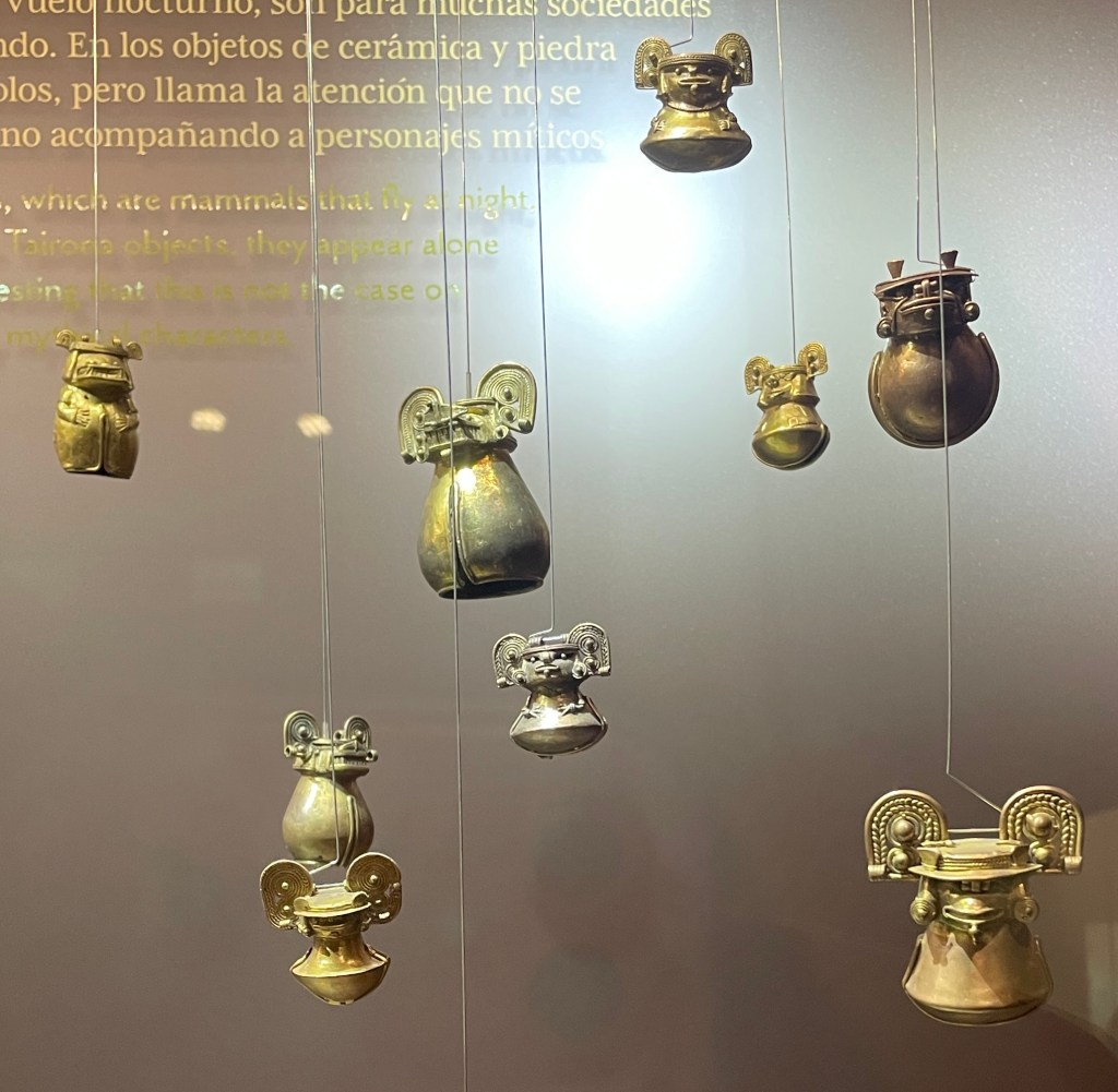 Instead of the library, I visited the Museo del Oro Tairona. The museum provides a history of Santa Marta while also displaying many gold items that archeologists have dug up over the years. (Colombia is rich in raw materials, including gold. There’s a famous Gold Museum in Bogotá too that people love to visit.) Unlike other museums we visited in Colombia, this one translated almost every exhibit into English. The time period of the museum spans from about 200 CE to the present, providing heaps of information about Indigenous people past and present, Spanish conquests and defeats, an homage to Simón Bolívar the great liberator of Latin America who died in Santa Marta, and Afro-Colombian culture. I learned so much but here are my favorite fun facts: