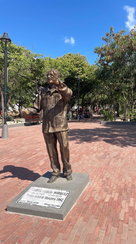 Once I finally felt better, though, I did venture a bit on my own. Below are a few photos of the boardwalk, which obviously includes a statue of Simón Bolívar. A huge library named after Gabriel Garcia Marquez, one of the greatest post-World War II authors in the world, is in Santa Marta as well. (The day I ventured out it was closed so I couldn’t visit.) There’s also a statue of him facing the sea. The first novel by Marquez that I read was Love in the Time of Cholera, which made me swoon as a teenager. It’s very likely that, even today, my preconceived notions of Spain and Latin America are based on Marquez’s descriptions. And, without getting too much into my colorful dating history before Adam, I think that my expectations for romance and love were largely based on Love in the Time of Cholera more than anything else I was exposed to as a teenager. That is to say: bittersweet, filled with secret pinning, requiring the utmost patience, and never guaranteed a happy ending. (Take that Jane Austen.)
