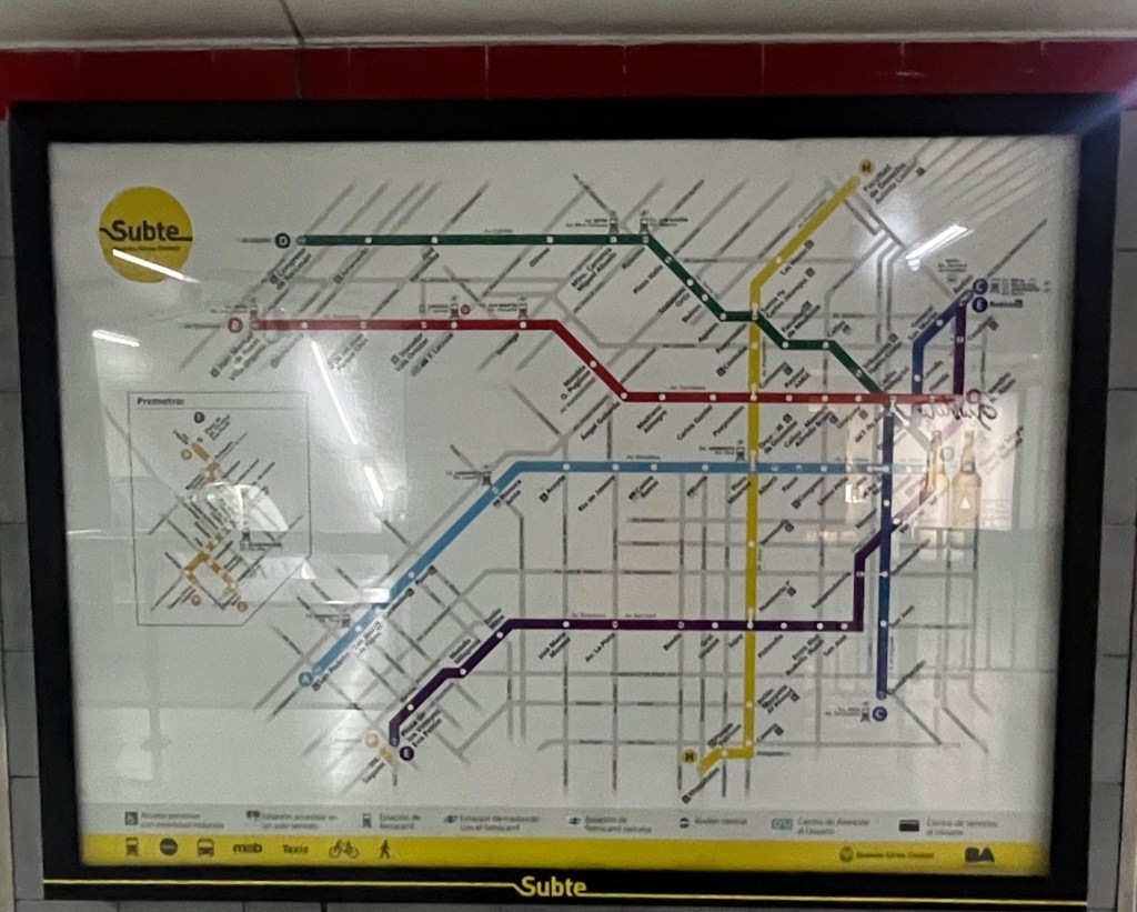 The city of Buenos Aires is served by an underground subway system called the Subte (an acronym for Subterráneo de Buenos Aires). This system covers much of the city proper of Buenos Aires and is one of the older underground systems in the world, having first opened in 1913. Six lines delineated by letters (i.e.: A, B, C, D, E, H) cover 35.6 miles (57.4 kilometers) and feature 90 stations across this city of over 3 million. Yahm and I utilized the Subte a few times, and will continue to do so while here as it is incredibly efficient. The best way to pay for fares on the subway and other transit modes is by purchasing a rechargeable card called a Sube card. This card can only be recharged with cash at specific kiosks, and the city is trying to phase physical cards out. Instead, more and more people are utilizing credit cards or their phones to pay.