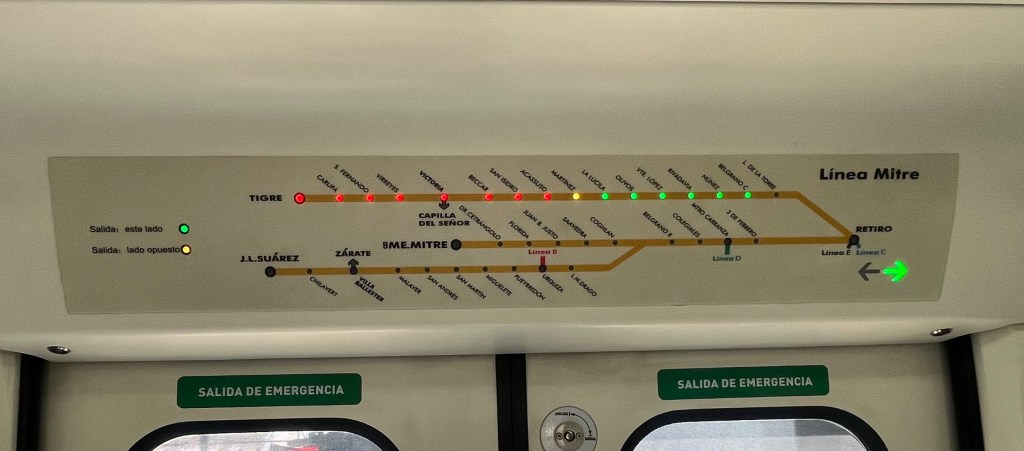 Trains do not just go underground in Buenos Aires. There is also an aboveground train that services both the city proper, the surrounding cities in the metro area, and exurbs within the Buenos Aires Province. Our housesitting gig in the northern suburban community of San Isidro was served by this train system, which took into Buenos Aires proper (as seen in the video below). The train comes less often than the subway does, but on average (in our experience at least) it arrives every 20 minutes. The train was less efficient than the subway, but it was a great way to go from the ‘burbs deeper into the city and was more effective than using a cab or ride share vehicle. The trains are also far less traveled by tourists than the subways or buses, maybe because they serve some of the more far-flung parts of the metro.