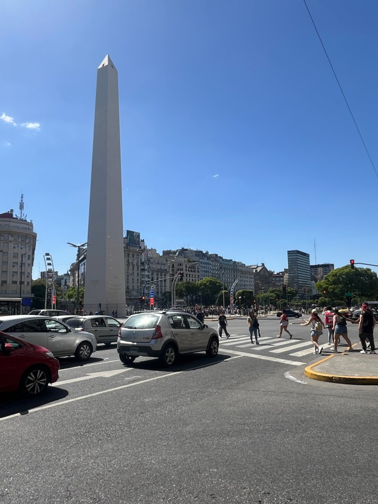 Bottom row, left to right: a street sign; the Buenos Aires Obelisk. (In case you’re curious: people were gathering to show support of Venezuela in light of the recent U.S. capture of Venezuelan president Nicolas Maduro.)