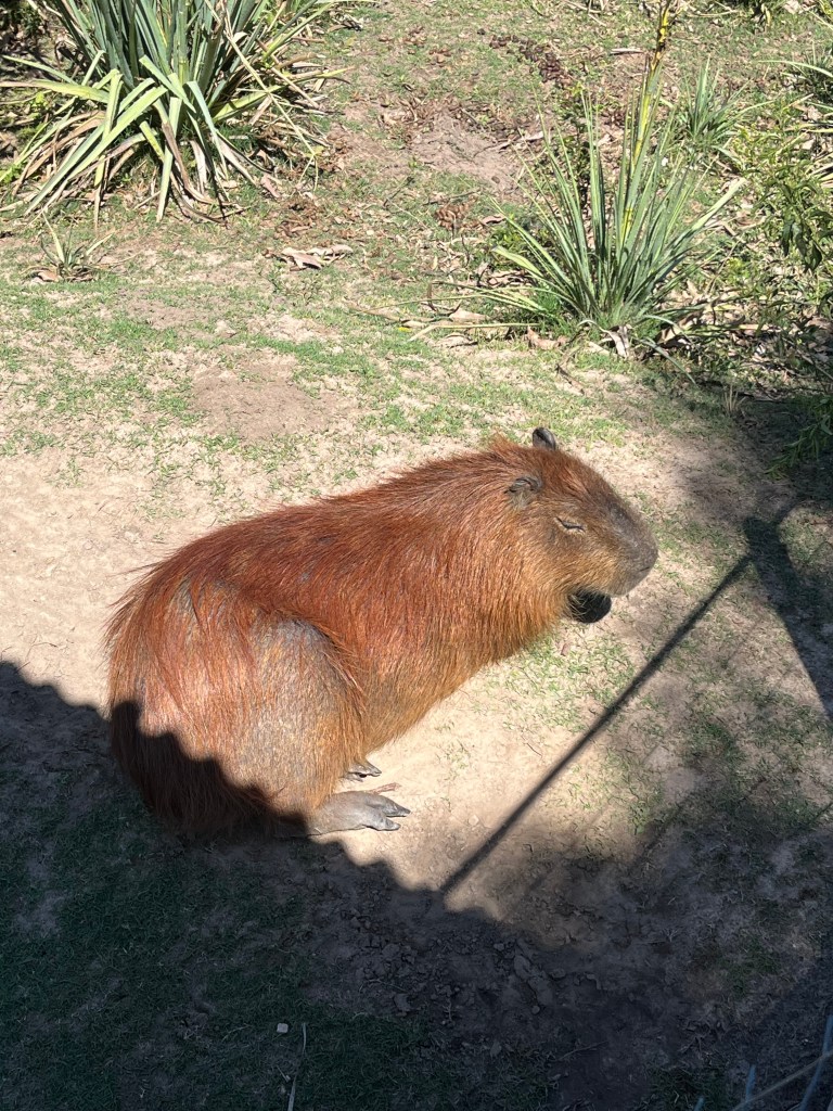 While the “nature” on display was a bit disappointing, we saw some charismatic wildlife native to Uruguay. Roaming the grounds of the aviary was a species of bird that I hoped to see during my hike in the Argentinian Pampas: the rhea. This bird is a member of the ratite group that includes ostriches, emus and cassowaries. Rheas are the only member of the family native to the Americas, and are the smallest member. Like their cousins, they are large flightless birds that remind you of dinosaurs as they saunter by. Rheas can be found throughout many of the major bioregions of southern South America, be it the Pampas, Gran Chaco, or Patagonia. While rheas can be weary of humans and take off at high speeds when they feel threatened, these individuals were confidently and calmly moving around the crowds. Some were chowing down on palm fruits and, in general, they seemed to be living their best lives.