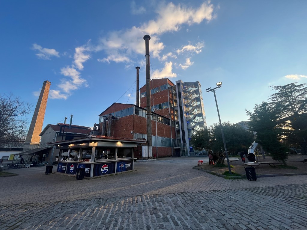 Though we don’t typically get excited about architecture, we do enjoy a repurposed building. The neighborhood of Gazi used to be a primarily industrial area because of a large coal and gas refinery. As the refinery has fallen out of use, it has turned into a museum that focuses on industrial archaeology (a new term for us). The complex, known as Technopolis, hosts concerts and other cultural events, while the neighborhood has become a trendy area for restaurants and bars. Below are photos of the complex’s exterior and from inside the museum.