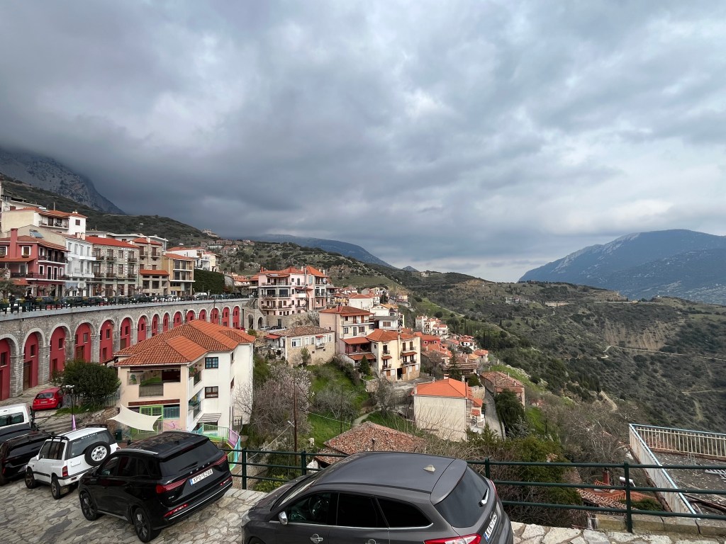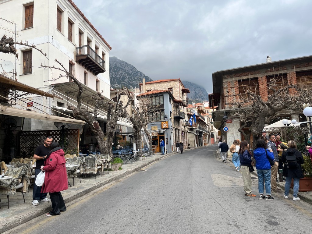 After touring the Delphi ruins and museum, we headed to Arachova for lunch. This charming mountain town is popular with Greeks and tourists alike for skiing and winter vacations. Luckily, the day we visited was quiet so we had an opportunity to take in the town before the bus ride back to Athens. If we had the time, we would have loved to stay for a night or two.