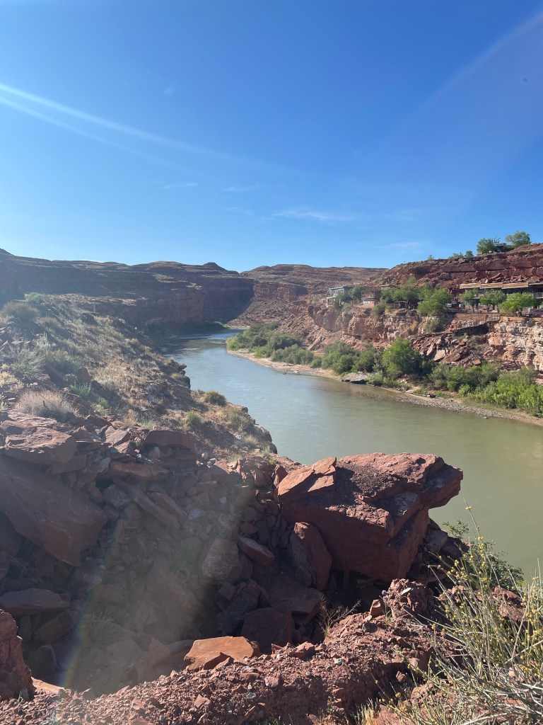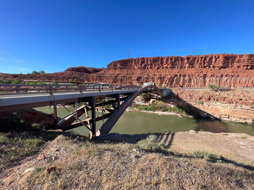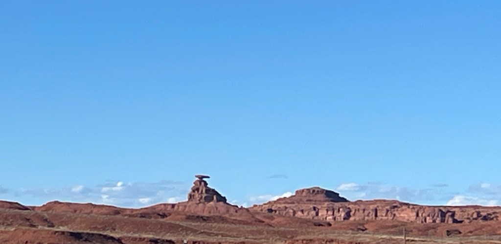 After our visit to Monument Valley we drove north into Utah for 23 miles to the town of Mexican Hat. We took photos of the eponymous rock formation and the San Juan River, a large tributary of the Colorado River which flows through the area.