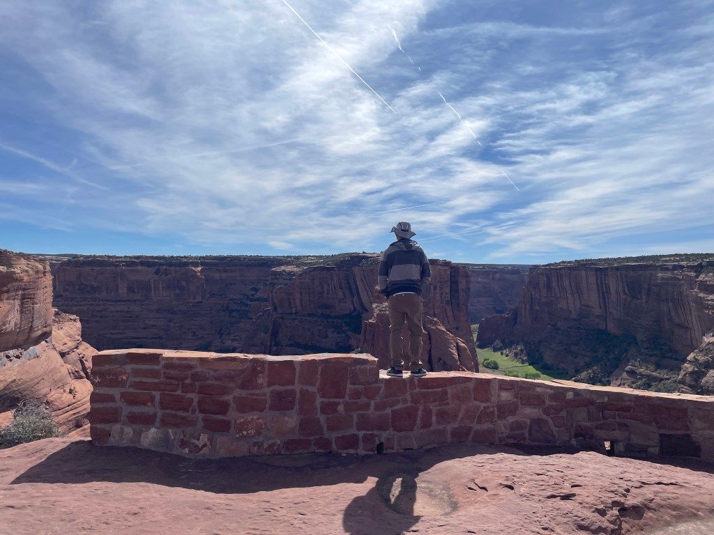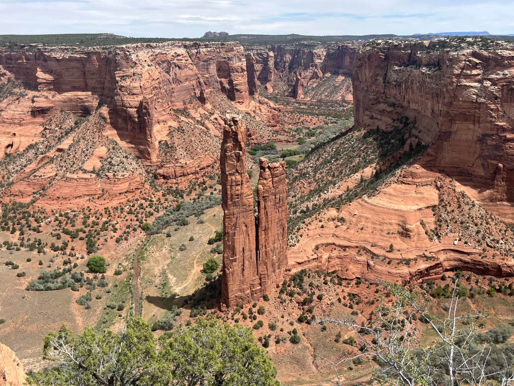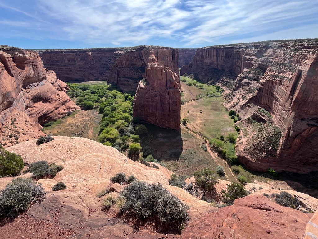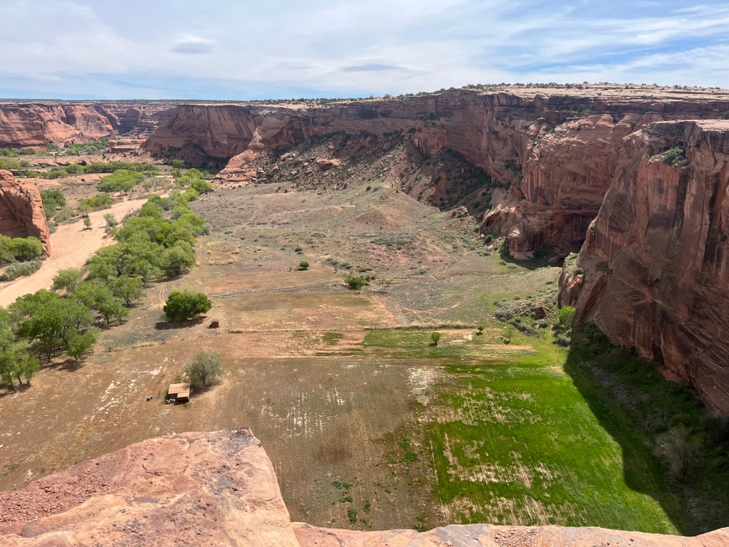 The next day we visited Canyon de Chelly National Monument, which Adam has visited twice before. People have been living in Canyon de Chelly for over 5,000 years since the bottomlands have creeks and rivulets that create fertile land for farming. Farming in the canyon continues to this day amid ancient ruins and weathered rock formations. Roads that bisect the canyon provide visitors with ten overlooks and a hiking trail. (Adam may have been adventurous enough to hike into the canyon and back up, but Yahm doesn’t do well when there isn’t much shade.) Instead, we visited the overlooks and tried not to get knocked over by all the wind. Below are some of our favorite photos.