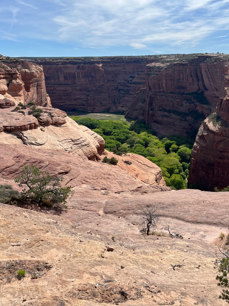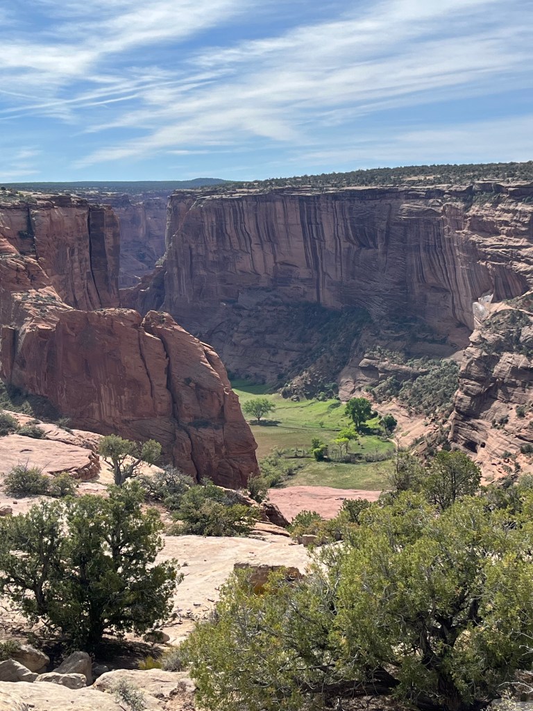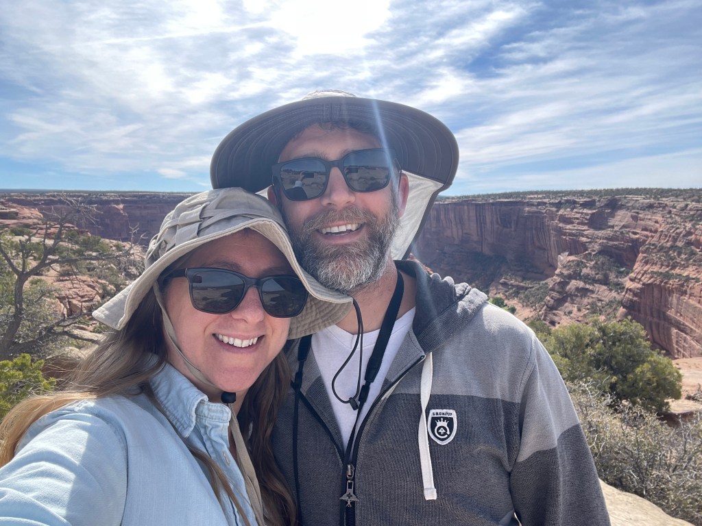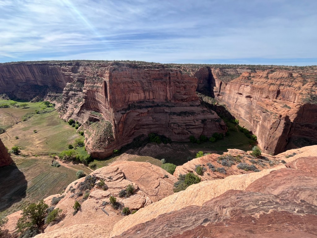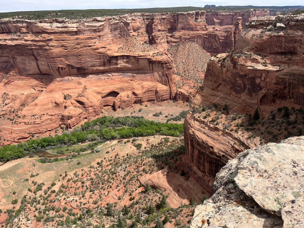 The next day we visited Canyon de Chelly National Monument, which Adam has visited twice before. People have been living in Canyon de Chelly for over 5,000 years since the bottomlands have creeks and rivulets that create fertile land for farming. Farming in the canyon continues to this day amid ancient ruins and weathered rock formations. Roads that bisect the canyon provide visitors with ten overlooks and a hiking trail. (Adam may have been adventurous enough to hike into the canyon and back up, but Yahm doesn’t do well when there isn’t much shade.) Instead, we visited the overlooks and tried not to get knocked over by all the wind. Below are some of our favorite photos.