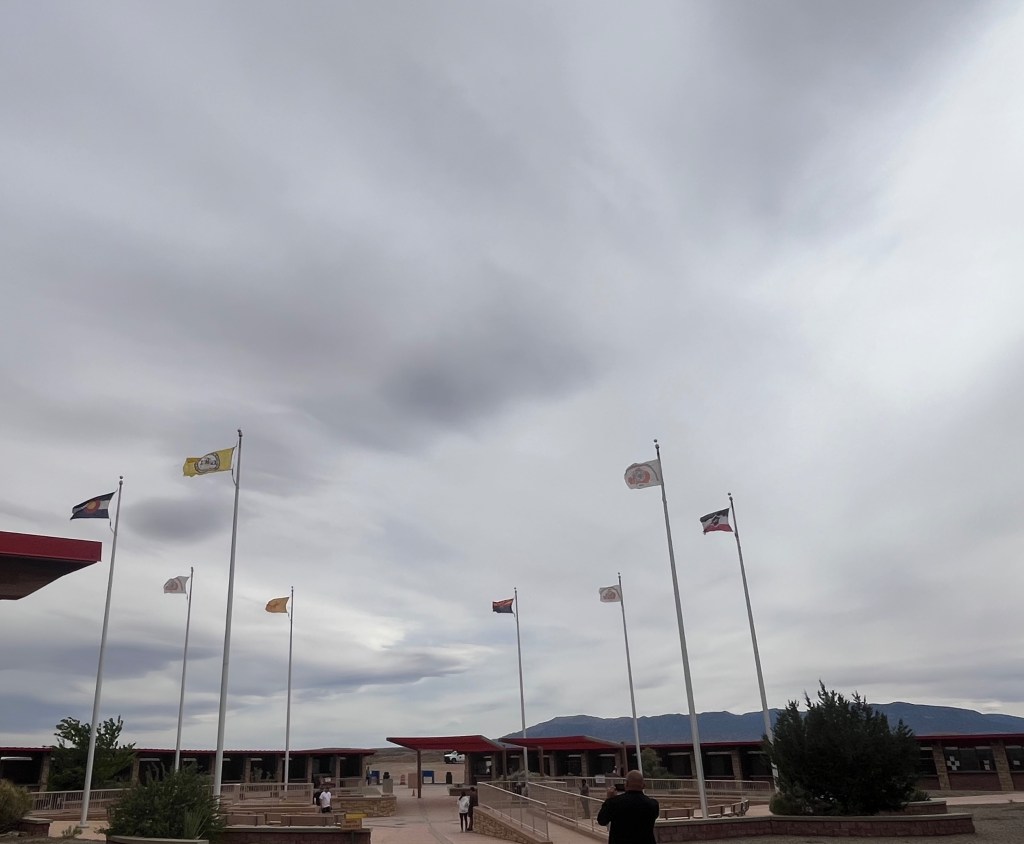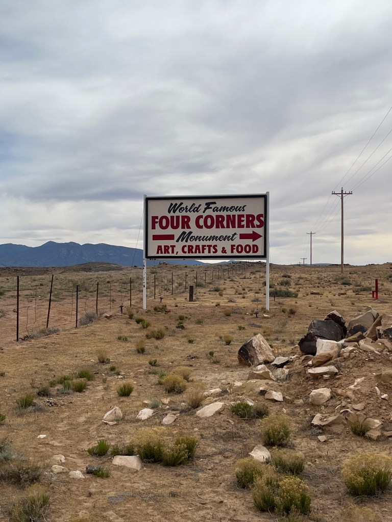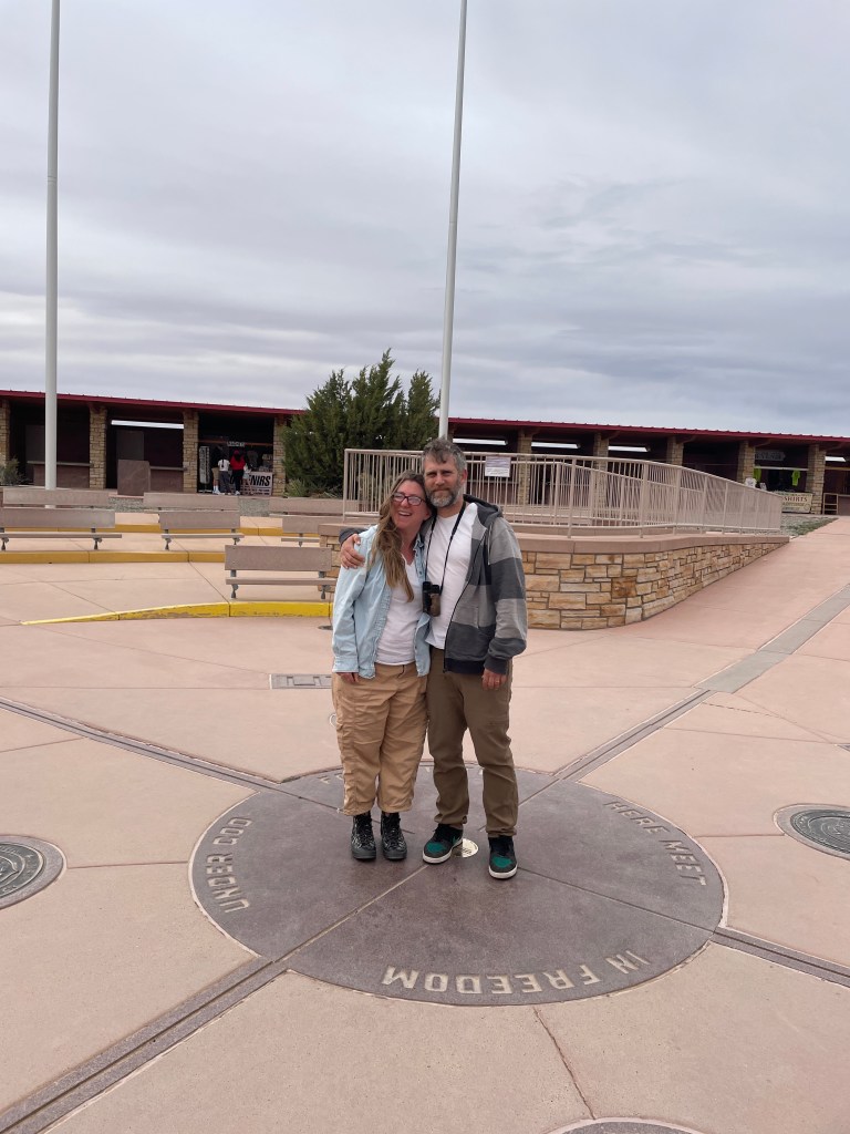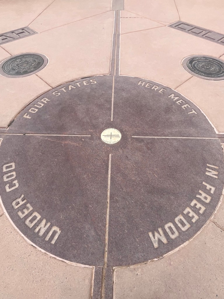 After a few hours at Canyon de Chelly, including eating a picnic lunch near the visitor center, we headed northeast to the Four Corners Monument, which is the meeting point of four states (Arizona, Colorado, New Mexico, and Utah). This monument is the only place in the United States where four state borders touch. Besides the actual point where the states touch, there isn’t much else to see. Still, we took lots of photos in all four states. Yahm can now officially say she has stepped foot in Colorado for the first time!