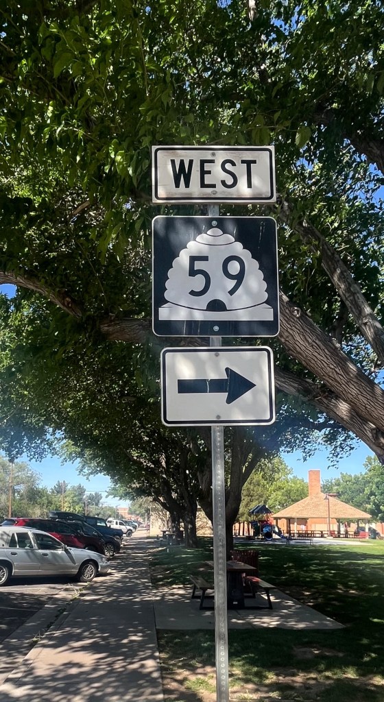 Bottom row, left to right: Utah State Route 59 (note the beehive!); Nevada welcome sign